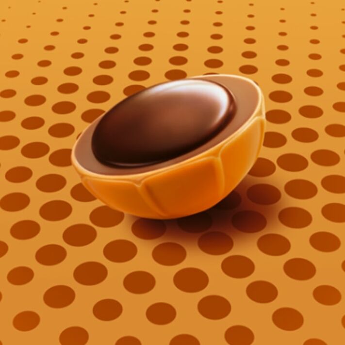 A unique combination that is great for every taste: a crunchy hazelnut in delicious caramel, with nougat cream and a drop of dark chocolate on top.